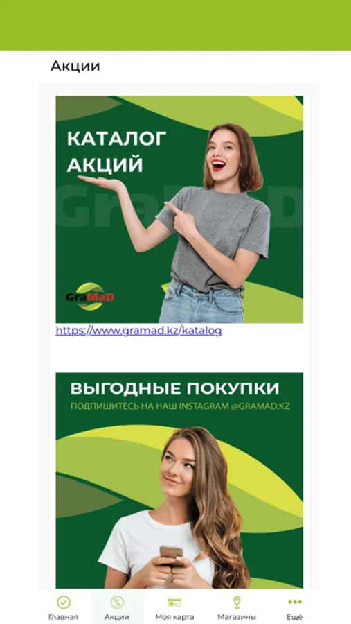 - "GRAMAD"сауда желісінен акциялар, жеңілдіктер және басқа да ұсыныстар туралы біліңіз;