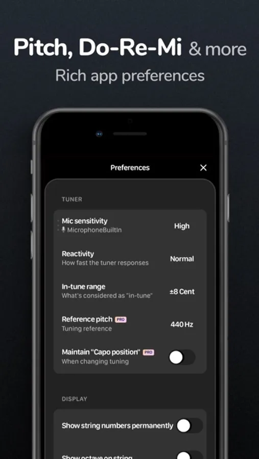 Tune any instrument as you wish with the chromatic tuner. If you know which note you want to tune, this is the easiest way.