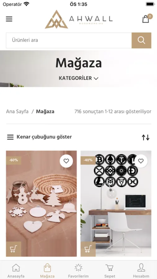 AHWALL WOODWORKING E-ticaret uygulaması ile tüm dekoratif ürünler bir dokunuş uzağınızda! AHWALL uygulaması ile mağazamızda yer alan, dekoratif mdf tablo, priz çerçevesi, pleksi dekoratif ayna, bardak altlığı, kapı numarası ve duvar saatleri gibi pek çok özel üretim ürünlerimize ulaşabilirsiniz.