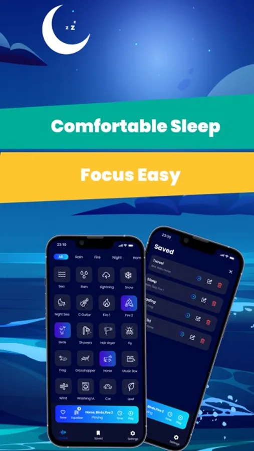 Focus infinity includes a variety of sounds in categories ranging from: sleep, meditation, lullaby, classical and relaxing music. Sleep sounds free sleep noise: