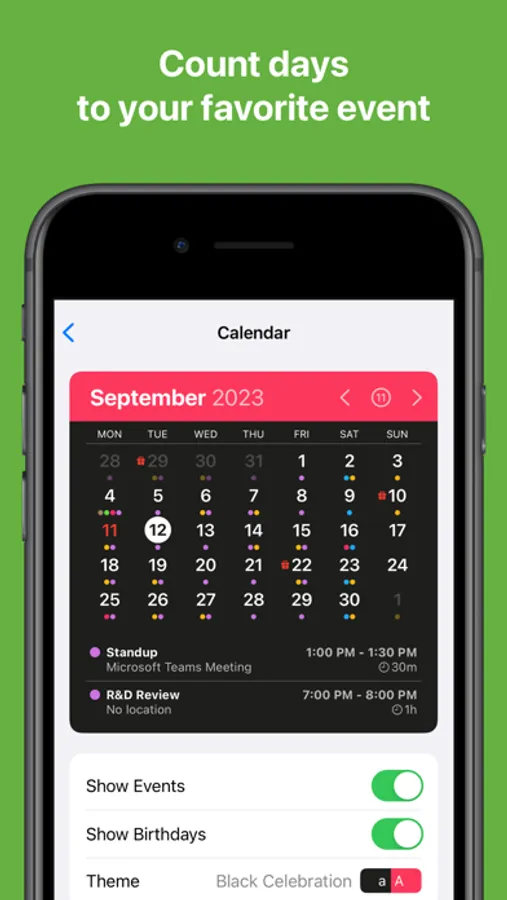 Add "Birthdays" widget to be reminded to say Happy Birthday to your family members and friends.