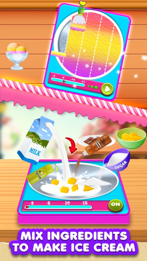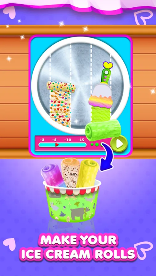 Time to be a pro master chef in a restaurant bakery cooking kitchen a make some mouthwatering DIY Ice Cream Dessert Rolls. Cut the juicy fruits in different shapes like a super cooking chef of fruit slicing games for girls. Chop your favorite vegetables into slices for decoration of your frozen ice cream treat. Become the master dessert rolls maker chef in the cooking frosty food world. Use yummy fruits to add delicious flavor in DIY ice cream cups and make it more enjoyable with awesome toppings in the DIY Ice Cream Dessert Rolls games.