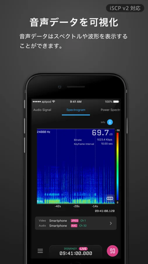 マイクデバイスからの音声データの再生や可視化にも対応しています。
