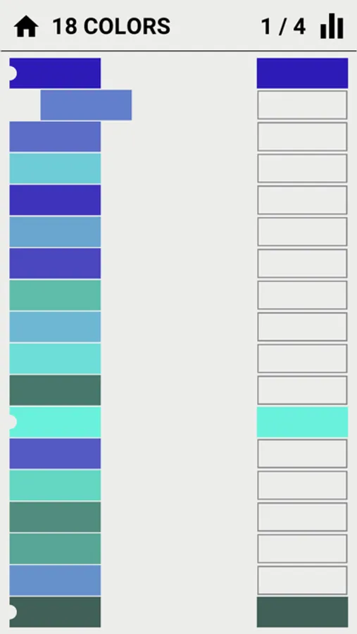Huestery is casual puzzle game where your goal is to place all colors in the correct order.