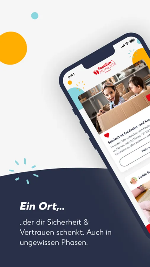 Mit der Familien Momente App von Kaufland, wollen wir euch als junge Familie ermöglichen, euch gut, gesund und nachhaltig zu entwickeln. Wir schaffen einen Ort, der euch Sicherheit und Vertrauen schenkt - auch in ungewissen Phasen. Eine App, die euch mit hilfe unserer Experten unterstützt, begleitet und inspiriert.