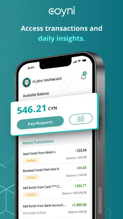 Track, manage, and view your personal spending within the coyni mobile app. From pending transactions to withdrawals and tokenization, you’ll know where your money is coming and going. Take control of your personal finances with an automated ledger that updates in real-time.