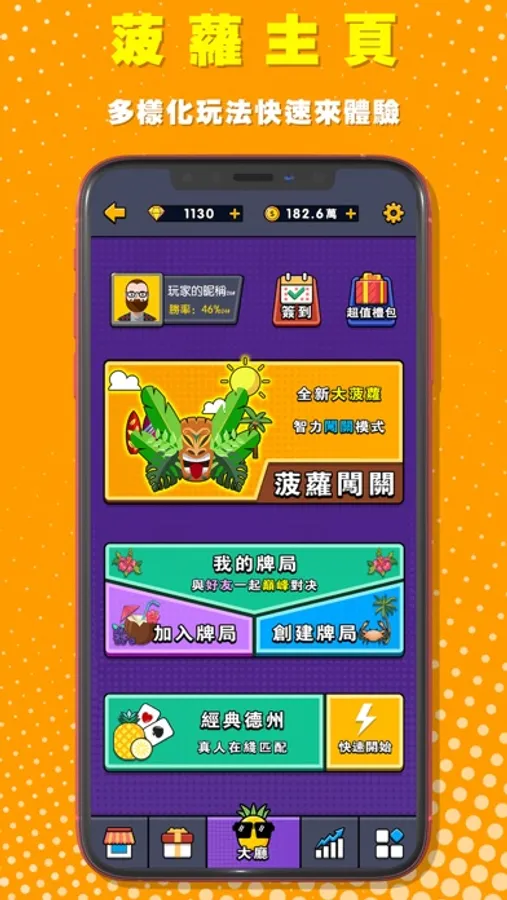 In Pineapple Texas Hold'em, every player can find a level that suits them and start a legendary journey anytime, anywhere.