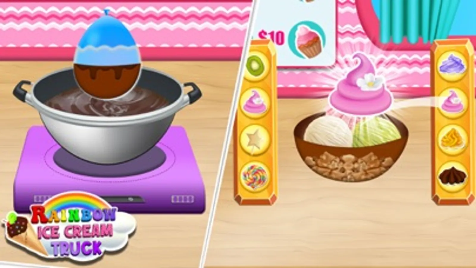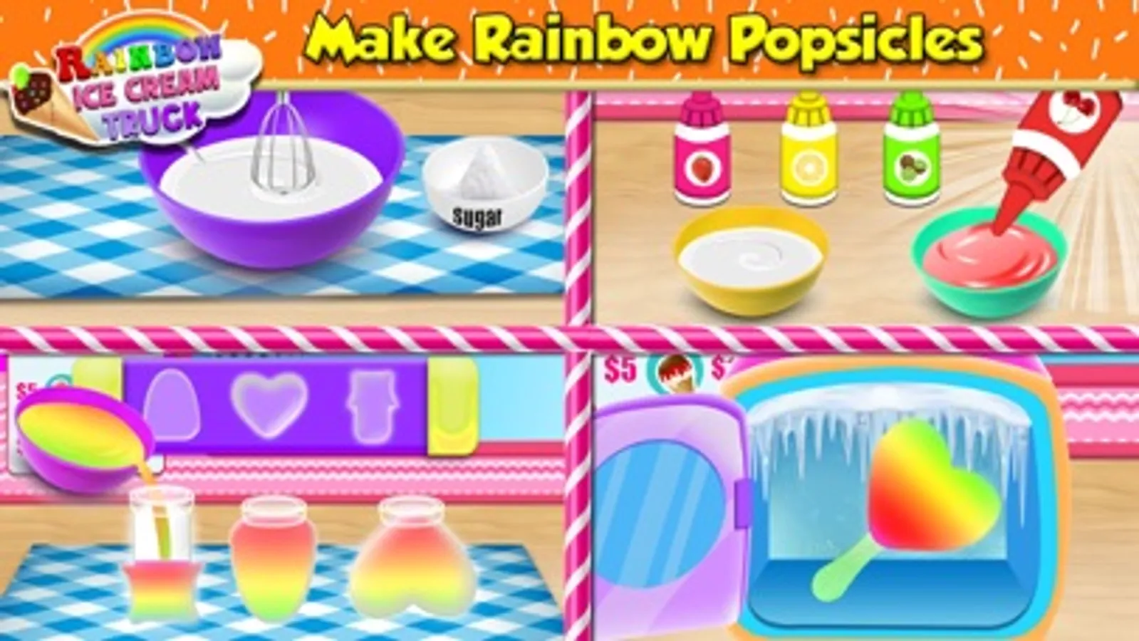 Let,s be a professional creamy ice cream truck driver and sell yummy icy desserts. This sweet making kitchen games for girls brings modern & girly rainbow trucks to make frozen ice popsicles. Show your beans topping and decoration skills after a creative ice popsicle baking. This ice popsicle cooking fun is for the lovers of ice cream parlor & master bakery chefs. Adventure dessert cooking games on the sundae ice gola truck & unveil the ice lolly world's joy. Clean and maintain your girly truck for daily sweet dessert cuisine & baking mania missions. Show the world your madness and drive through the city roads to supply kitchen cooking game pastries and donuts. Begin your frosty ice cream maker journey with your Ice popsicle maker truck.