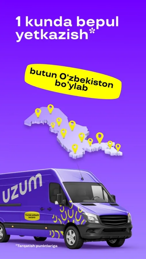 • Tarqatish nuqtasiga ertasi kuniyoq bepul yetkazib berish