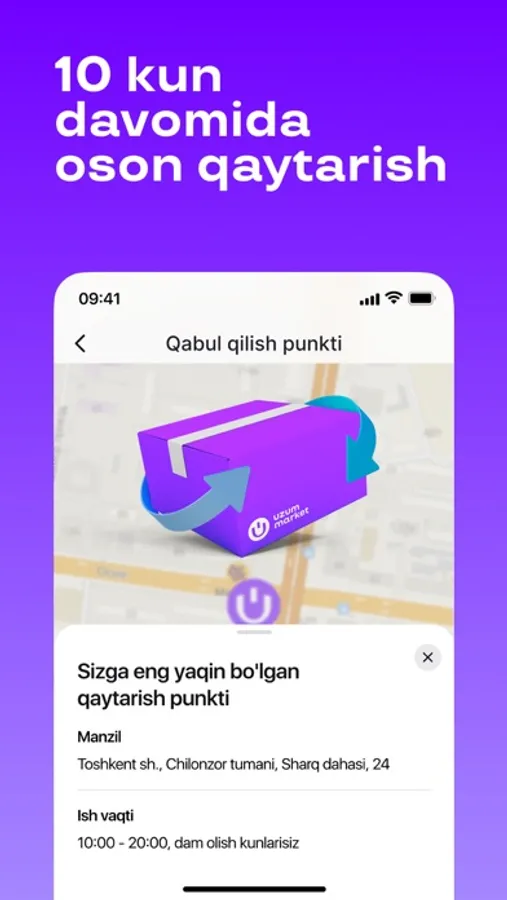 • Mahsulotni 10 kun ichida qaytarish imkoniyati