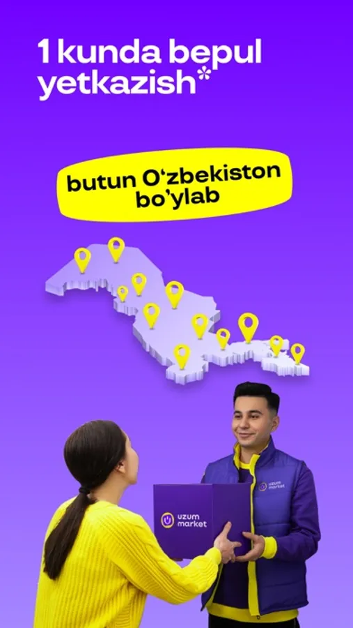 - O'zbekiston bo'ylab tovarlarni 1 kun ichida yetkazib berish;