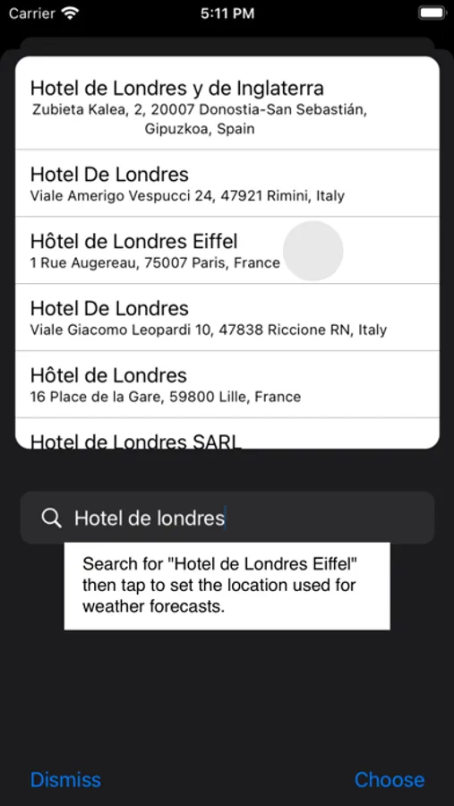- Choose forecast location based on phone location and the map via pan, zoom, and point-of-interest search.