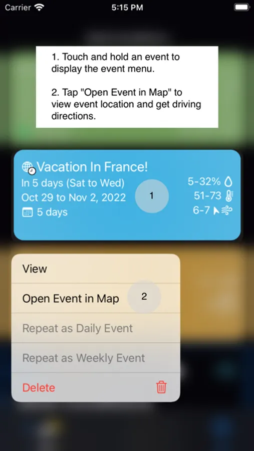 If you're traveling to the event, choose Open Event in Map to view the destination then go!