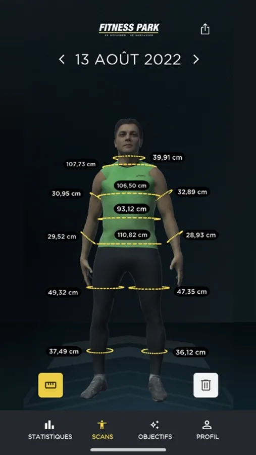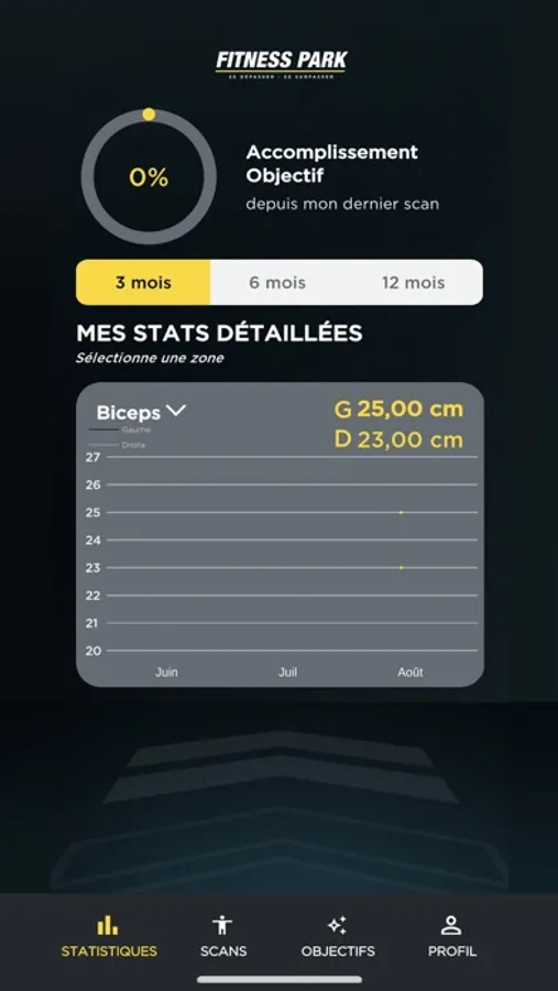 Évalue ta progression au fil des scans dans le menu statistique (1 scan par mois disponible dans l’option Ultimate). Suis ton avancement dans l’atteinte de ton objectif.
