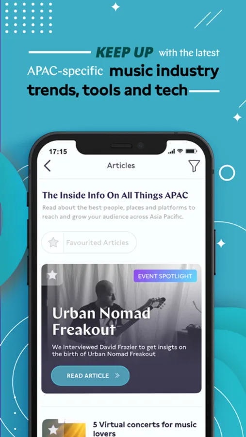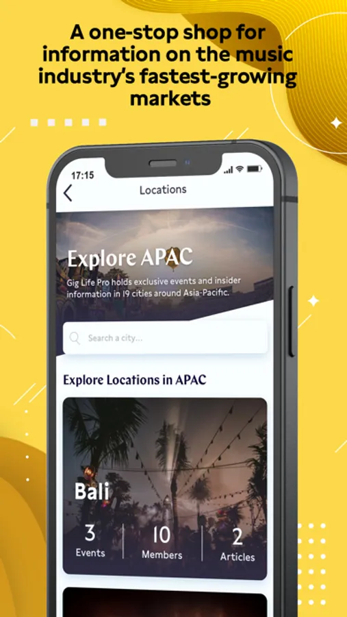 The app provides practical information about the global music business and specific APAC markets through articles and other content, as well as information about and invitations to industry events.
