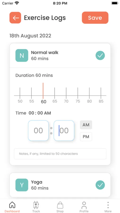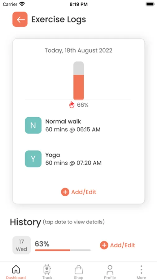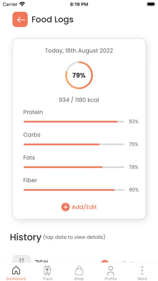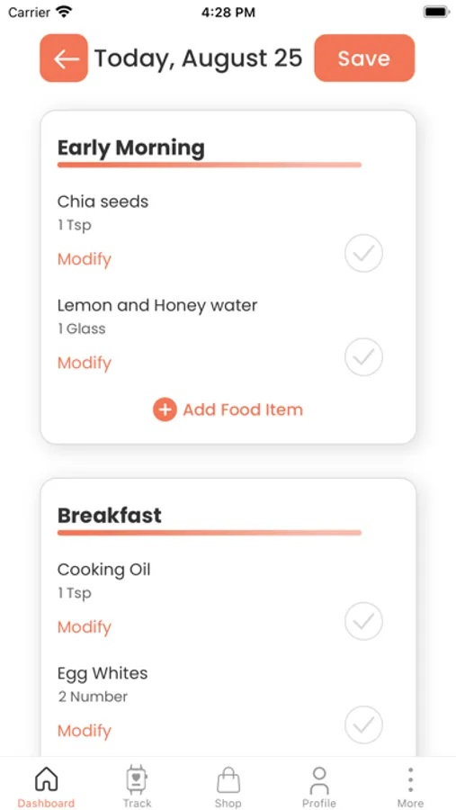 Our app helps you log all your daily health information- from your meals and workouts to your sleep, vitamin and medication intake. You can even track your progress easily on the app.