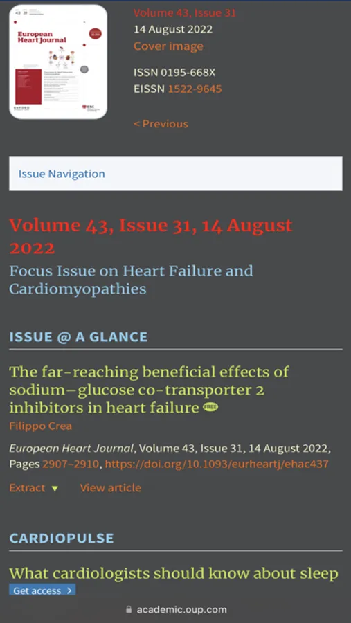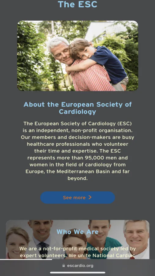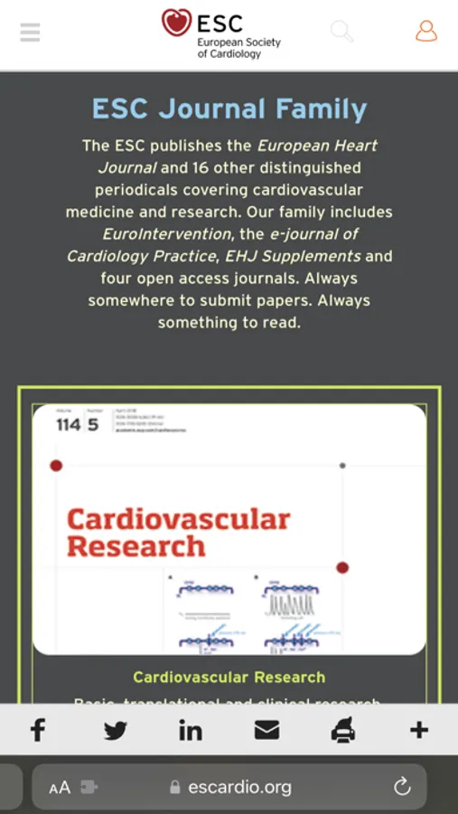 The extension modifies popular medical websites to make them easy to read for long periods of time and in poor lighting conditions. The screenshots show an example of the modification of ESC and the family of its periodicals.