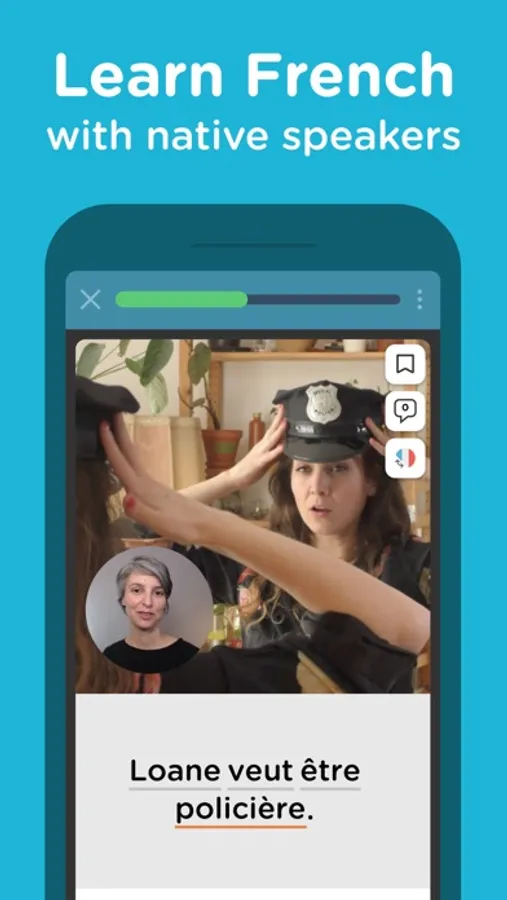 Seedlang's focus is on improving your French speaking and listening skills. We do this by building interactive experiences using videos of native speakers.