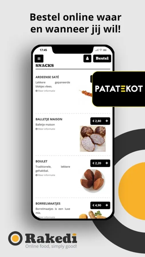 Bij Patatekot hebben we heerlijke frietjes en hamburgers. Bestel online via onze app.
