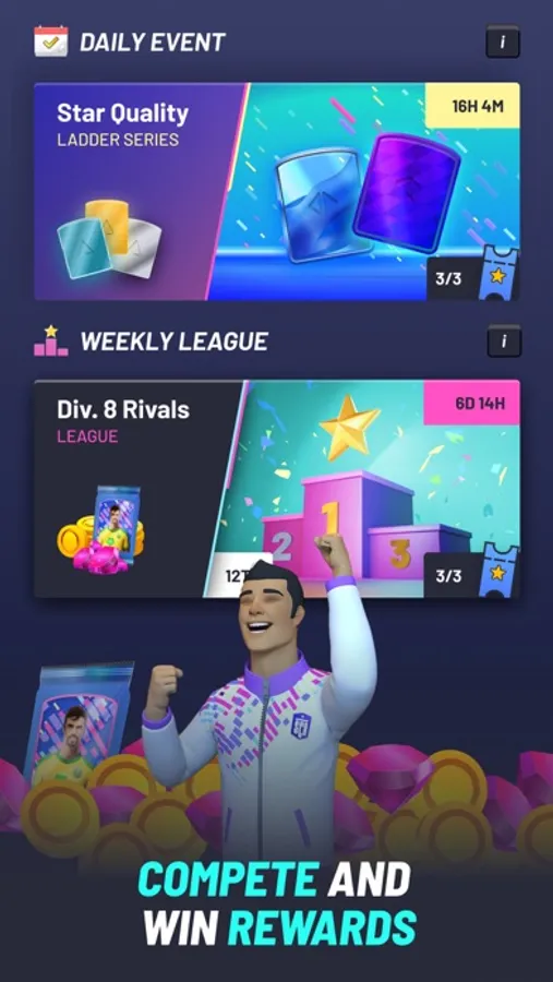 Put your teams to the test in live events and rack up the rewards that will take your squad-building to the next level. The more you win, the more you’ll rise – filling your team with elite stars and unlocking your club’s full potential.