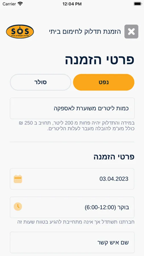 אס או אס אנרגיה אקספרס הינה חברת הדלק הגדולה בישראל לשרותי תדלוק שטח. אפליקציה זו מאפשרת לבצע הזמנות לתדלוקי שטח וחימום ביתי בקלות וללא צורך בשיחה עם נציג.