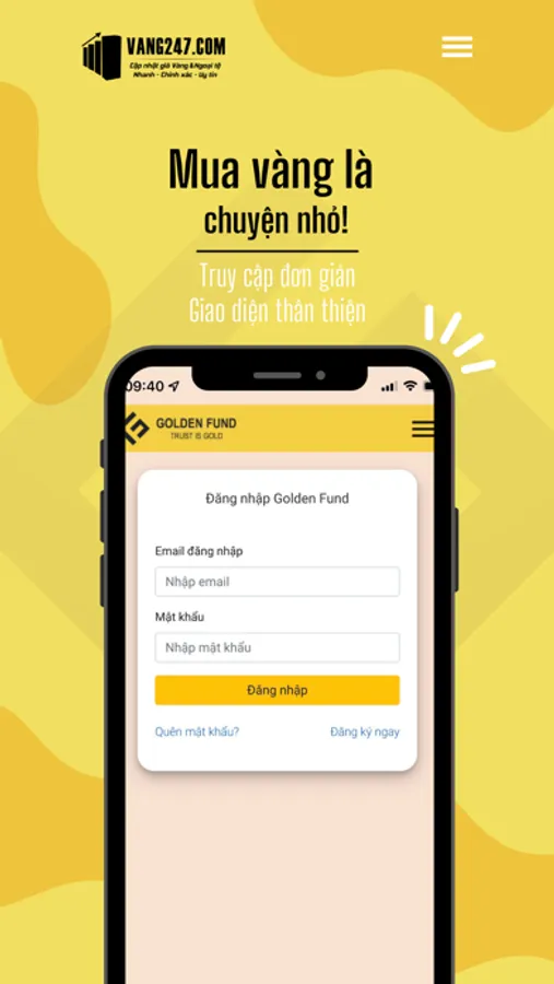 Nhằm hỗ trợ các doanh nghiệp kinh doanh Vàng nắm bắt được giá Vàng và giá ngoại tệ đang biến động tại thị trường tự do một cách nhanh, chính xác và uy tín nhất, Công ty Cổ phần Vàng bạc Đá quý GOLDEN FUND đã cho ra mắt ứng dụng Vàng 247 hiển thị giá Vàng và giá ngoại tệ để gửi tặng đến quý nhà Vàng, quý nhà đầu tư trên cả nước.