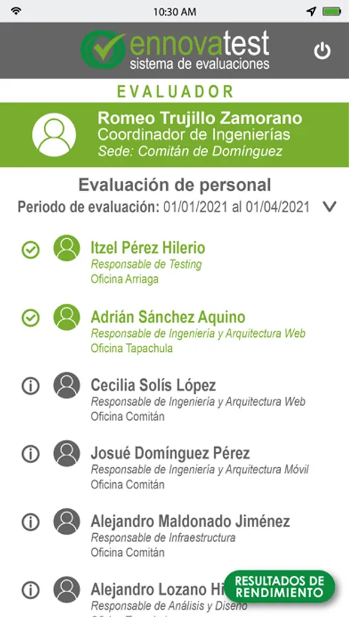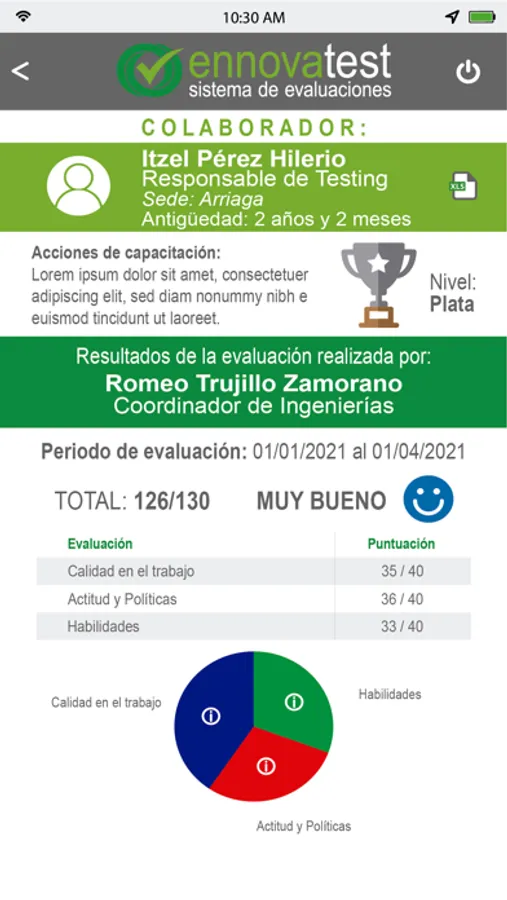 Ennovatest es una herramienta para evaluación de personal en una empresa o compañía, con la cual podrás obtener información de cada uno de los recursos humanos evaluados y poder tomar acciones de mejora, te permite administrar a tus evaluados y evaluadores y configurar los periodos de evaluación de forma ágil y sencilla.