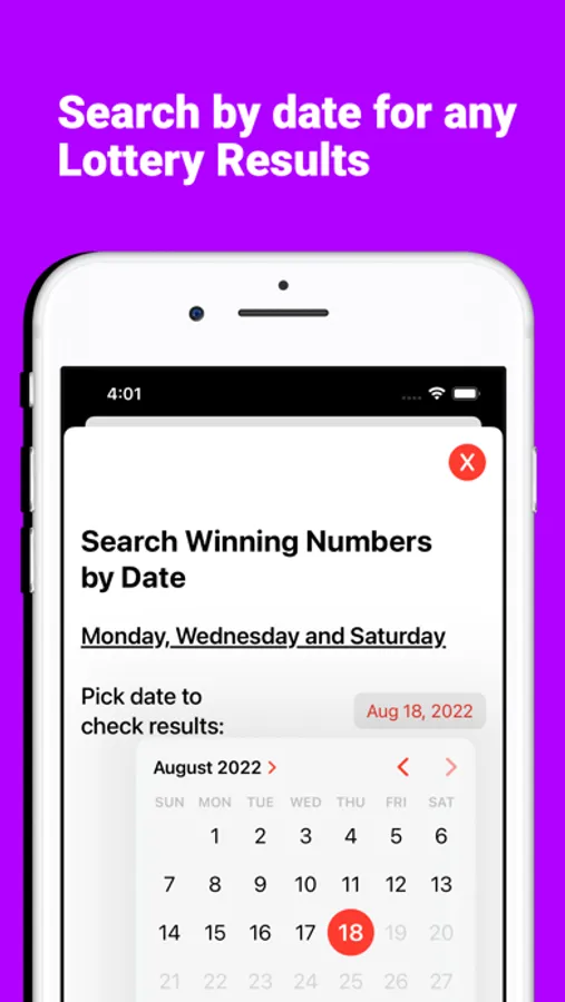 Find past and current winning numbers by selecting any date of your choice.