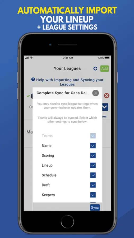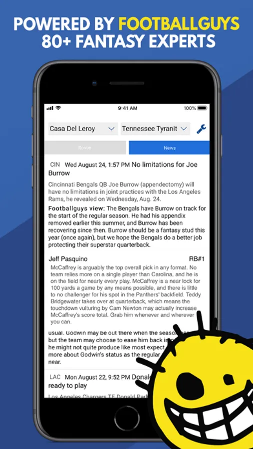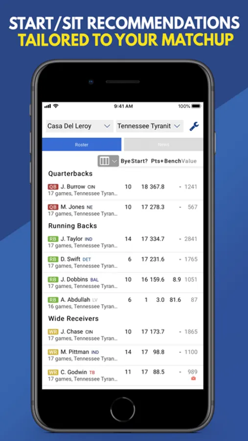 • Import your rosters from your league host (all major fantasy football providers supported)