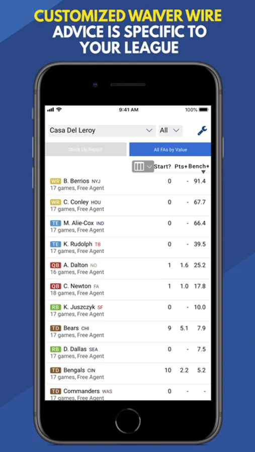 • Customize to your fantasy football league settings