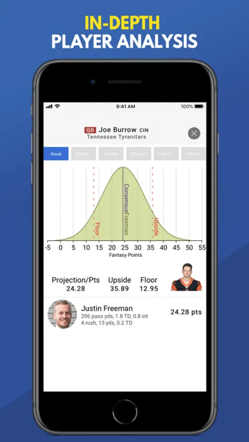 • Understands true probability of a player’s likely outcomes, not just a single points projection or worse still a weekly ranking!