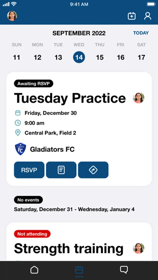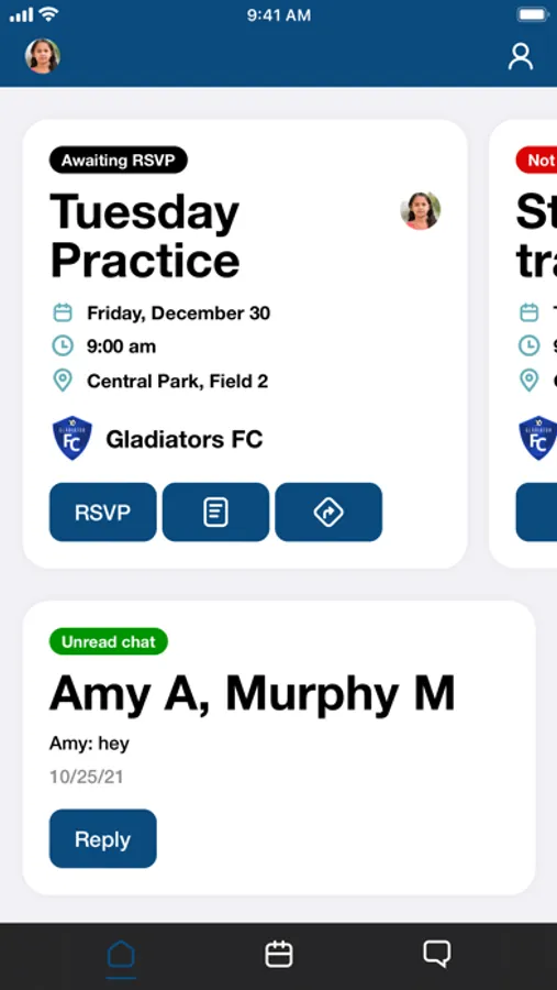 Want more details? Happy to help! We’ve improved our app’s design and navigation so it’s easier to see the most important information at the right time, including in a new Home feed. This includes coach notes which are high priority staff messages that will be sent as emails and push notifications, and displayed as alerts in the app (so no one misses them!). We’ve also added more event management features for coaches, allowing staff to create and add custom event locations on the fly, as well as input scores after the games directly in the mobile app.