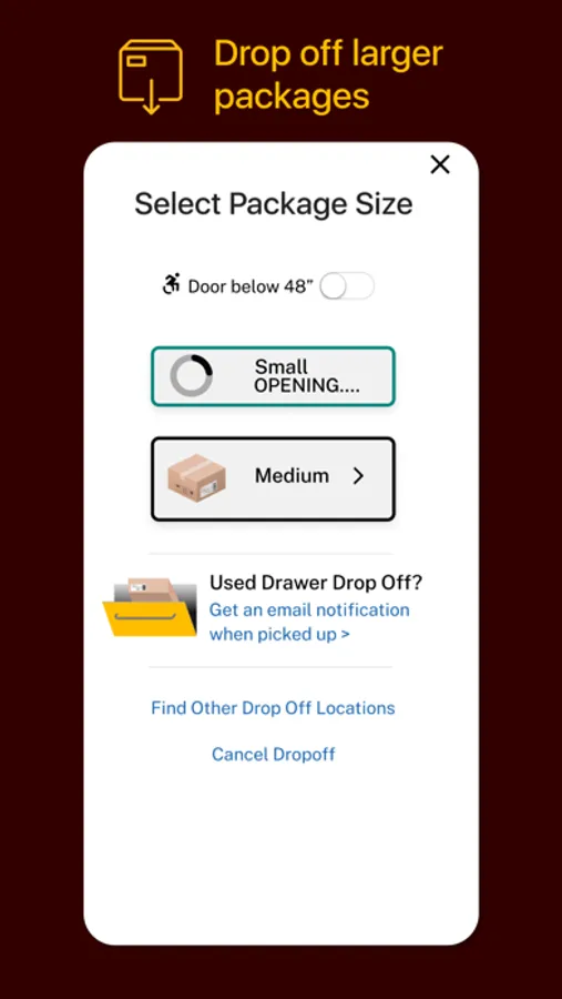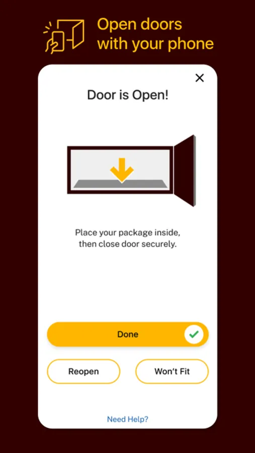 Simply open the drop box app on your phone to connect and open a door and drop off your item. Be sure to close the door when you're done.
