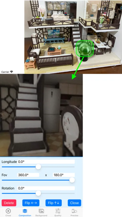 By using this function, you can easily create 360° images of miniatures, dioramas, dollhouses etc.