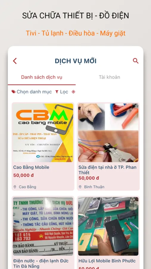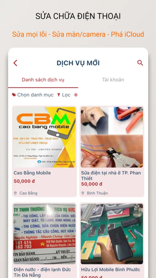 * Các dịch vụ sửa chữa có kênh quảng cáo/tiếp cận khách hàng uy tín, chất lượng và hiệu quả tập trung tại app này.