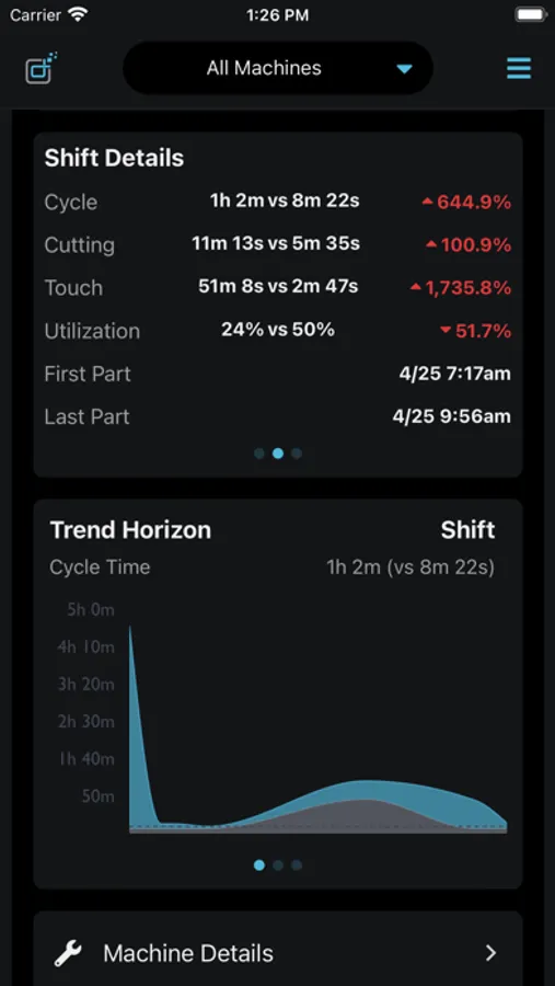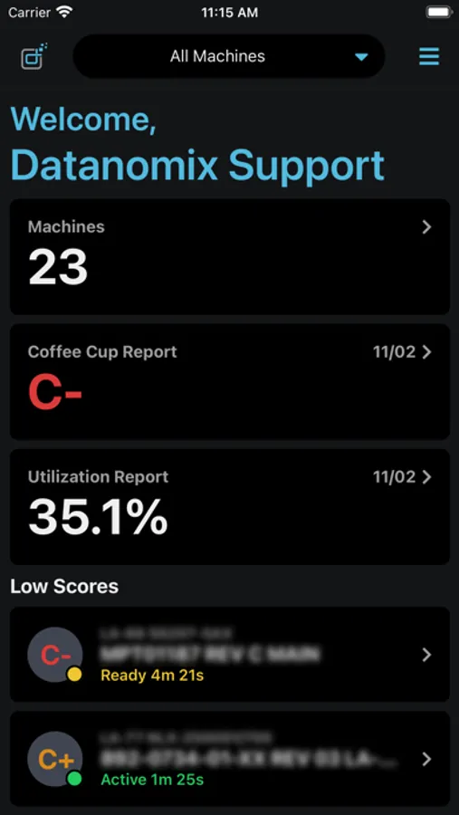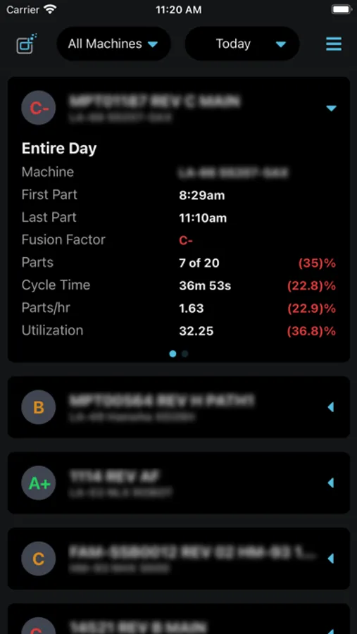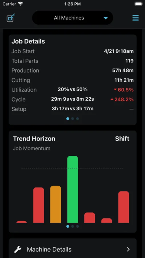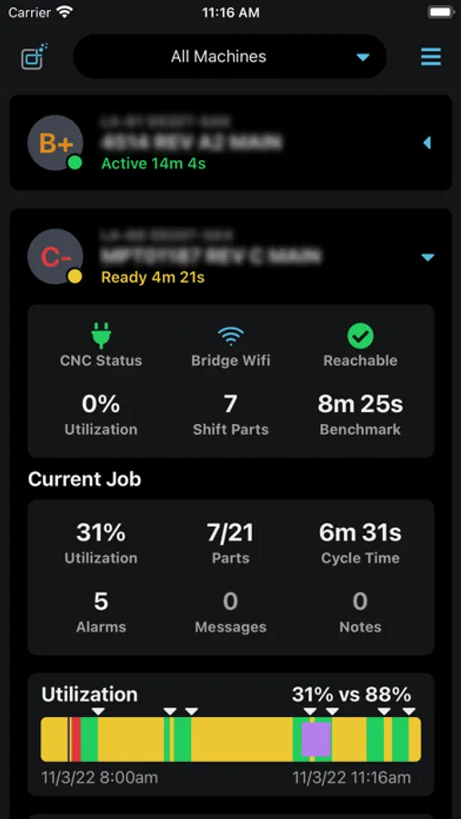 See the status of your Datanomix-connected machines to track job performance in real-time on