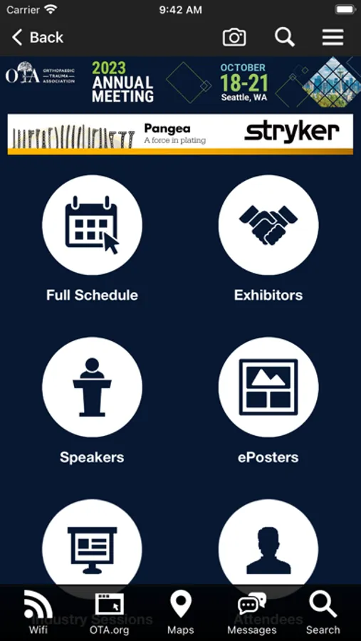The OTA Events mobile application allows you to access OTA various meetings. Within the underlying event apps, users can access presentations, exhibitors, and connect with other attendees. Users can also take notes adjacent available presentation slides and draw directly on slides inside the event apps.