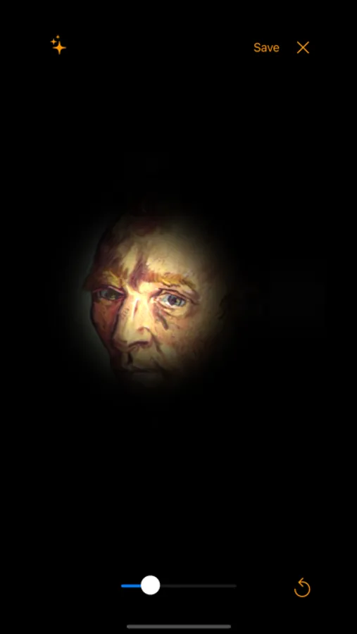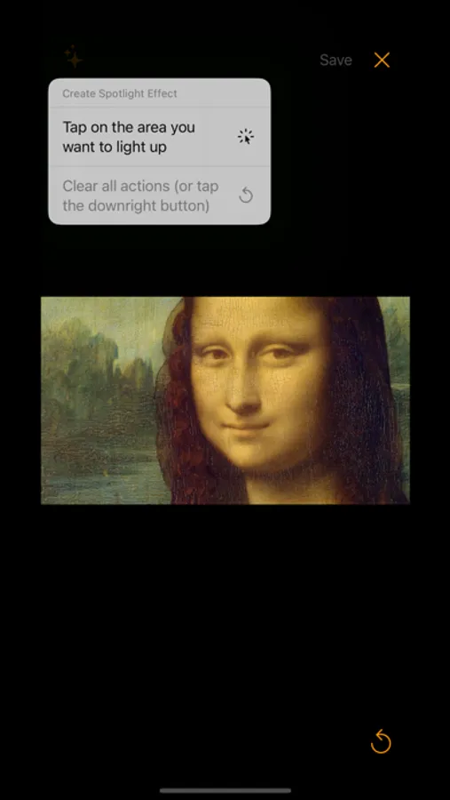 - Tap any point on the photo with your finger to light up the spotlight effect there.