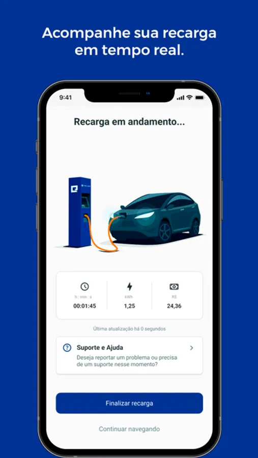 Tenha controle total da sua recarga em tempo real, de forma simples e remota.