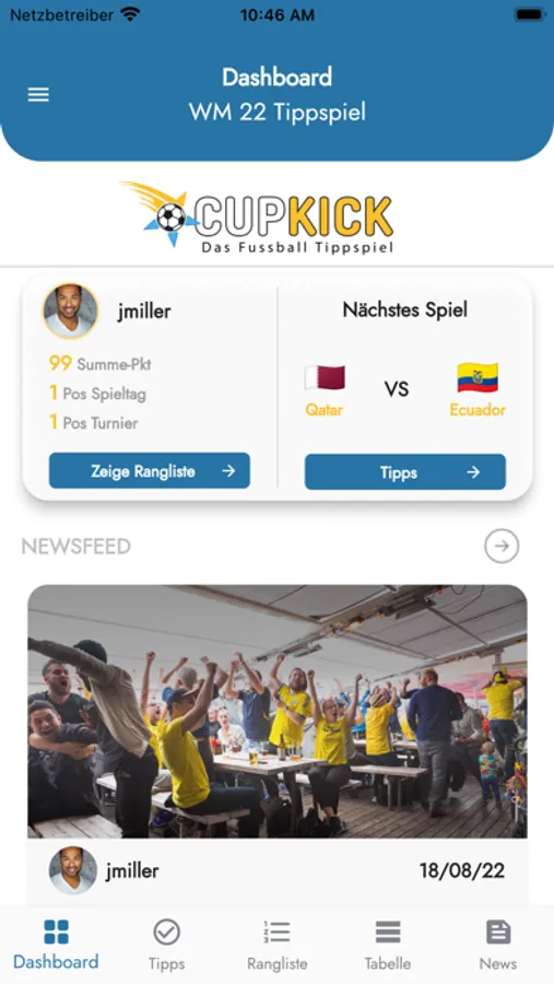 Mit der cupkick App für iOS kannst du von unterwegs bequem deine Tipps zur Fußball WM abgeben.