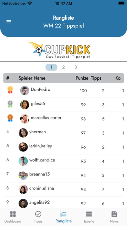 Die Passioncode GmbH, Apple und Google sind nicht Sponsoren der Gewinne, die bei cupkick ausgelost werden können. Die Gewinne können vom jeweiligen Betreiber des Tippspiels auf Wunsch angeboten werden.