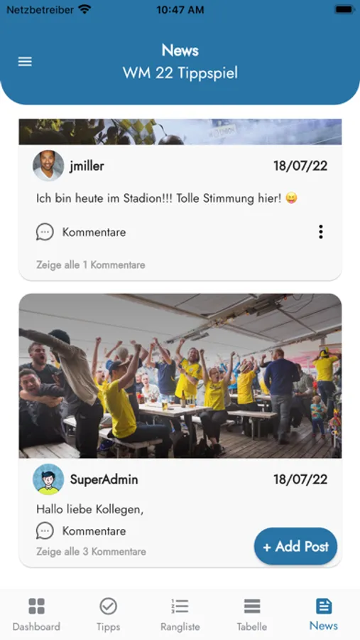 Unser Tippspiel sticht durch eine einfache und klare Benutzeroberfläche hervor. Mit der einfachen Bedienung und der Vielzahl an Funktionen wird Ihr Tippspiel bestimmt zum Erfolg.