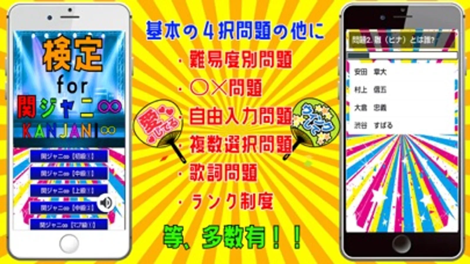 大人気ジャニーズグループ 「関ジャニ∞」に関するクイズアプリです。