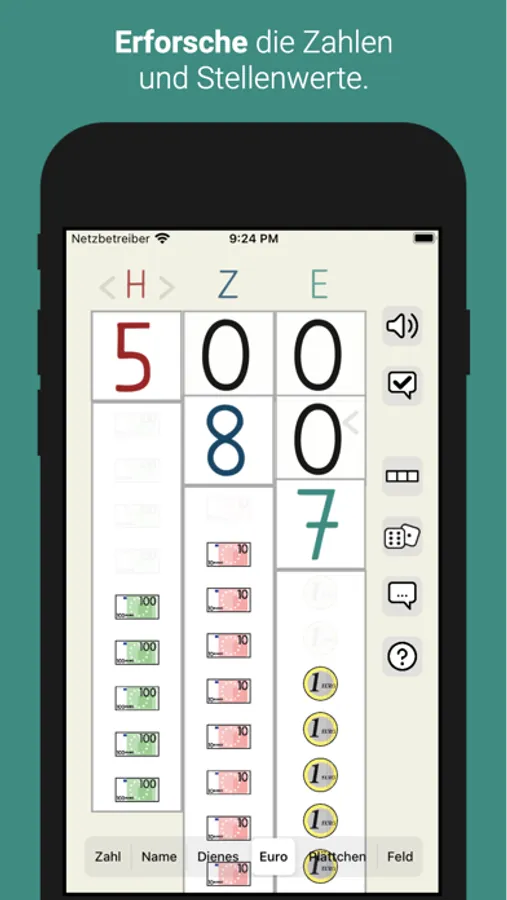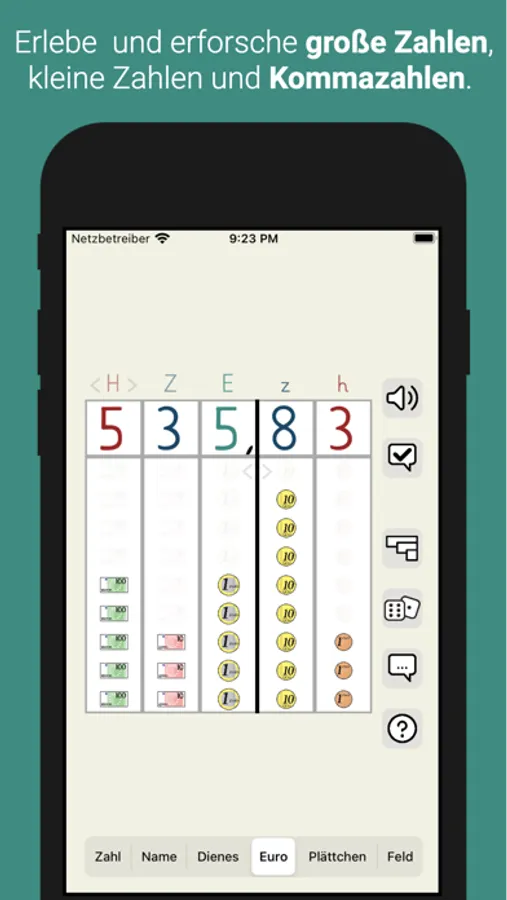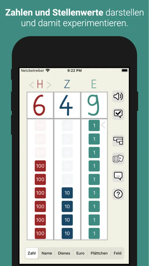Mit dieser App kannst du große und kleine Zahlen und die Bedeutung der Stellenwerte interaktiv erforschen. Es ist keine Übungsapp, sondern eine Experimentierumgebung.