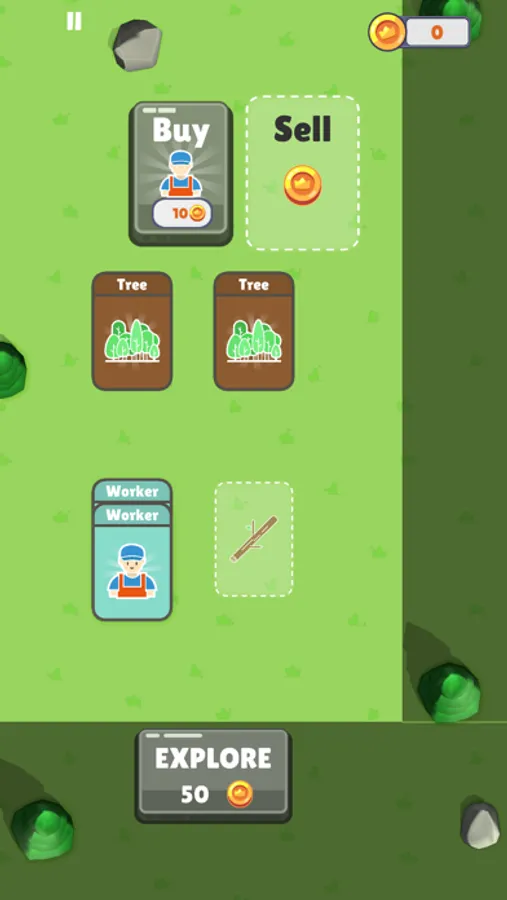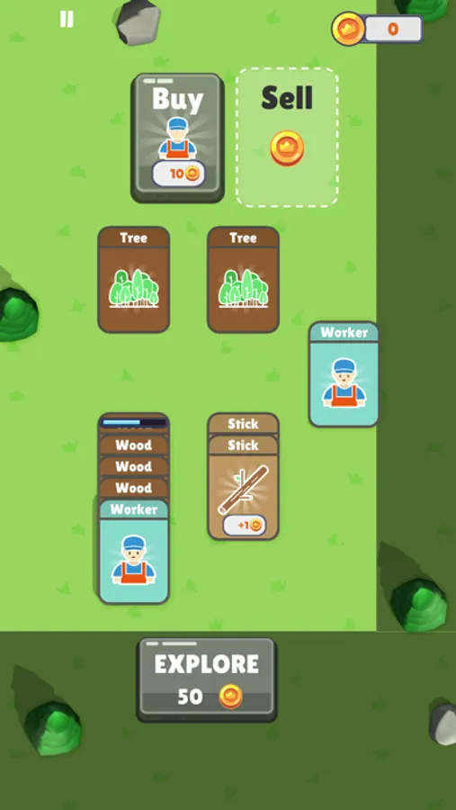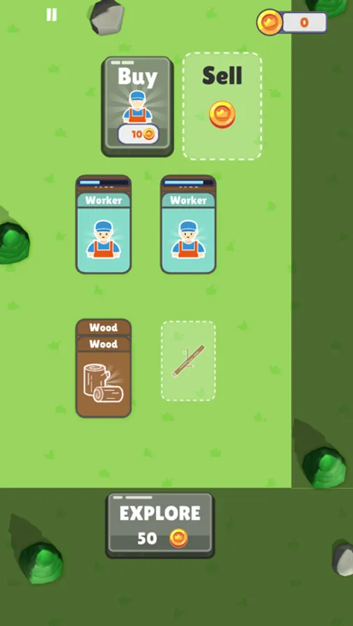 Put the cards in the right place in order to earn money, increase the land and the number of workers and earn more!
