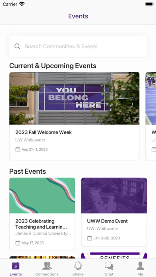 A one-stop shop companion for all UW-Whitewater Events (Virtual, Hybrid, In-Person). The UWW Events App serves as a digital event guide and content hub, giving you easy access to all of the information surrounding the events you attend!