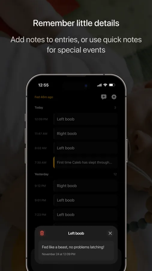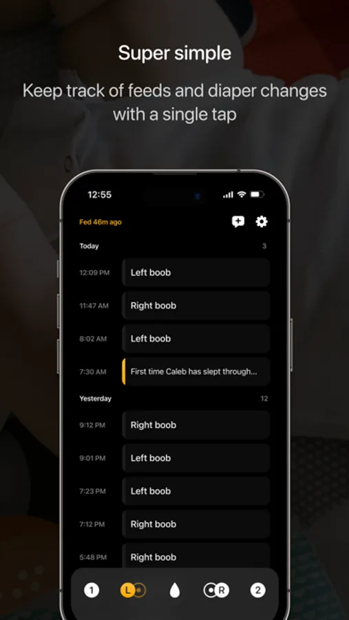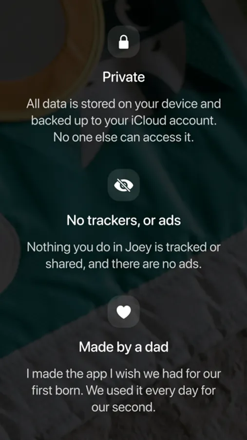 Joey is a delightfully simple, privacy-first, app for tracking newborn feeds and diaper changes.