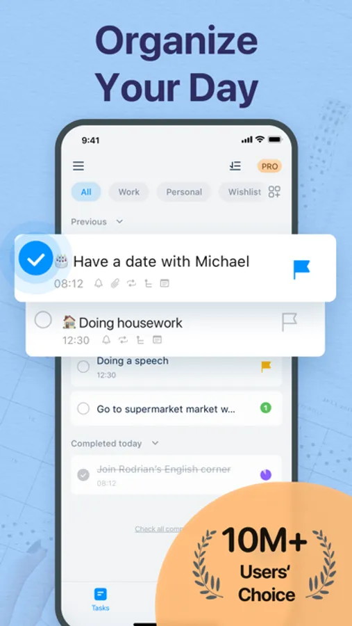 To-do List - Tasks Reminders, as a To Do List productivity planner app, is dedicated to helping users track things to do, and make daily plans free and provide important tasks reminders. Keep your life and work well organized. Come and have a try now.