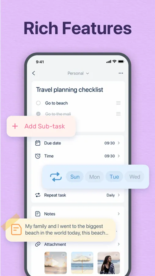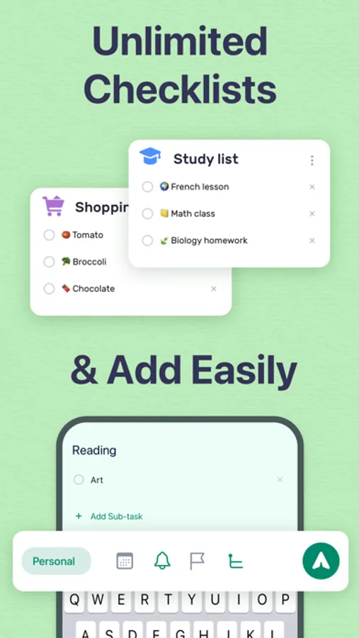 Also you can add sub-tasks for to.do.list, making all checklists well organized.