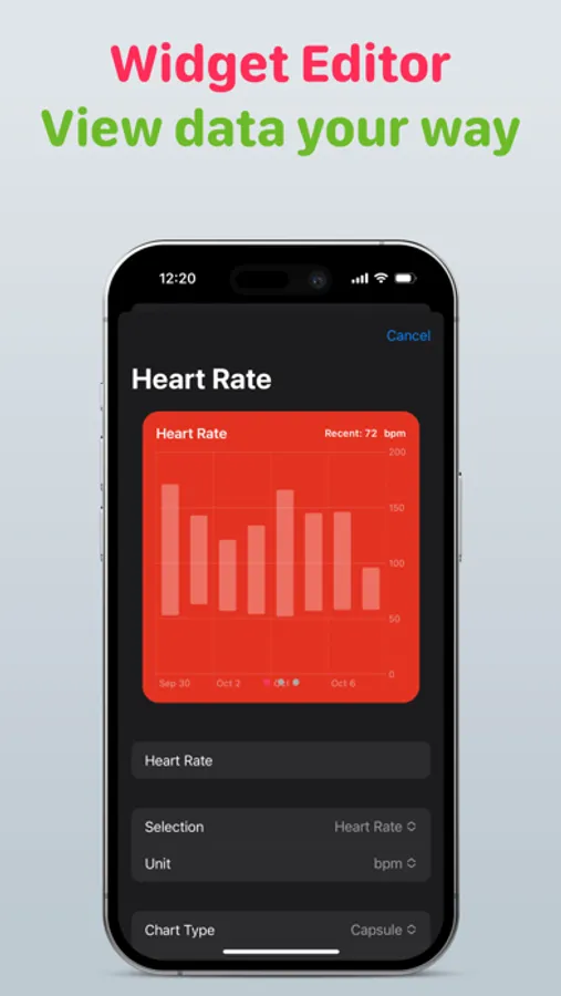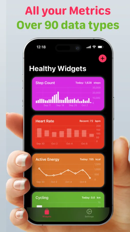 Healthy Widgets integrates with the Health app to support over 90 health data types, and with a built-in widget editor, there are more ways than ever to personalize your experience.